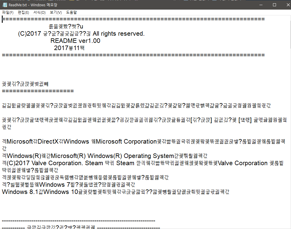 위 버튼을 누르면 ReadMe.txt 파일이 메모장 으로 열리는데