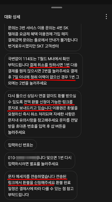 상단에 '대화 상세보기' 버튼을 눌러보면 음성 통화내역 전체가 글로 표시되게 됩니다
