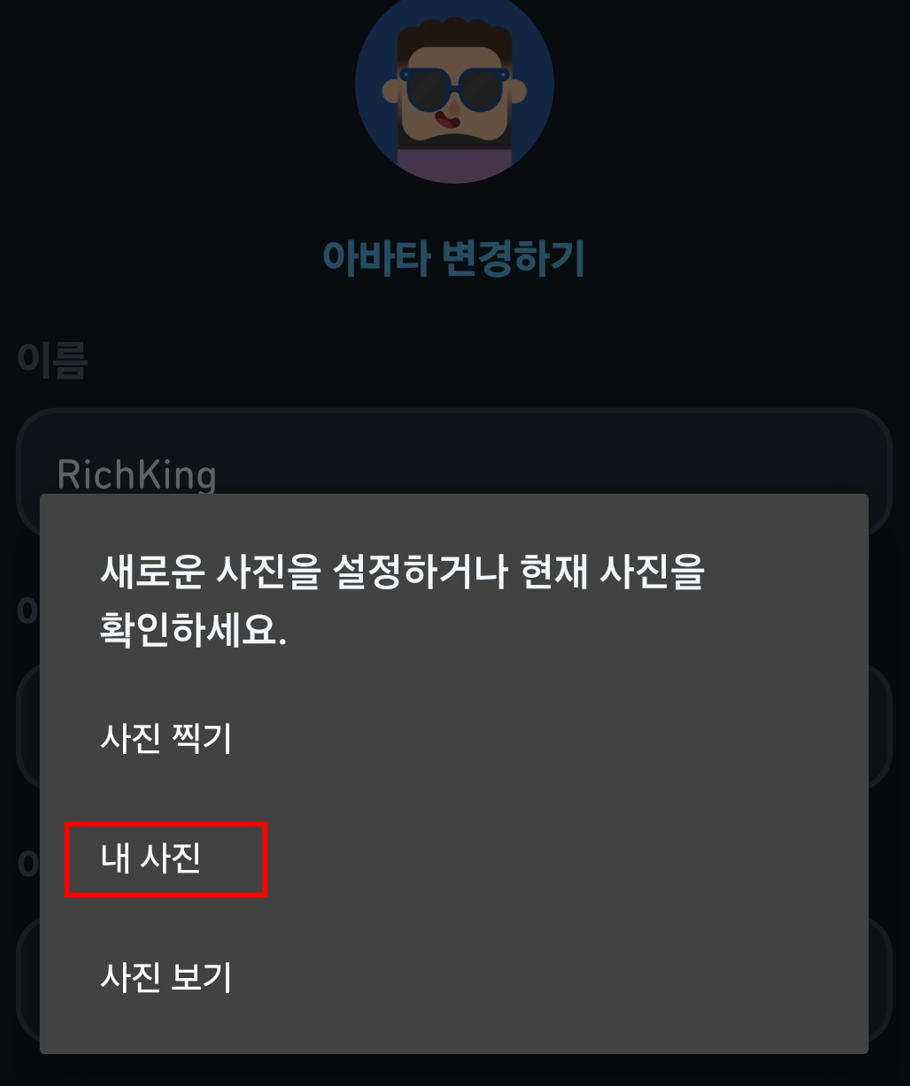 3) 구버전앱을 설치 한 후 프로필 사진을 원하는 사진으로 바꿔줍니다