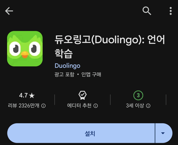 5) 구글스토어에서 (최신버전) 듀오링고를 다시 설치합니다.
