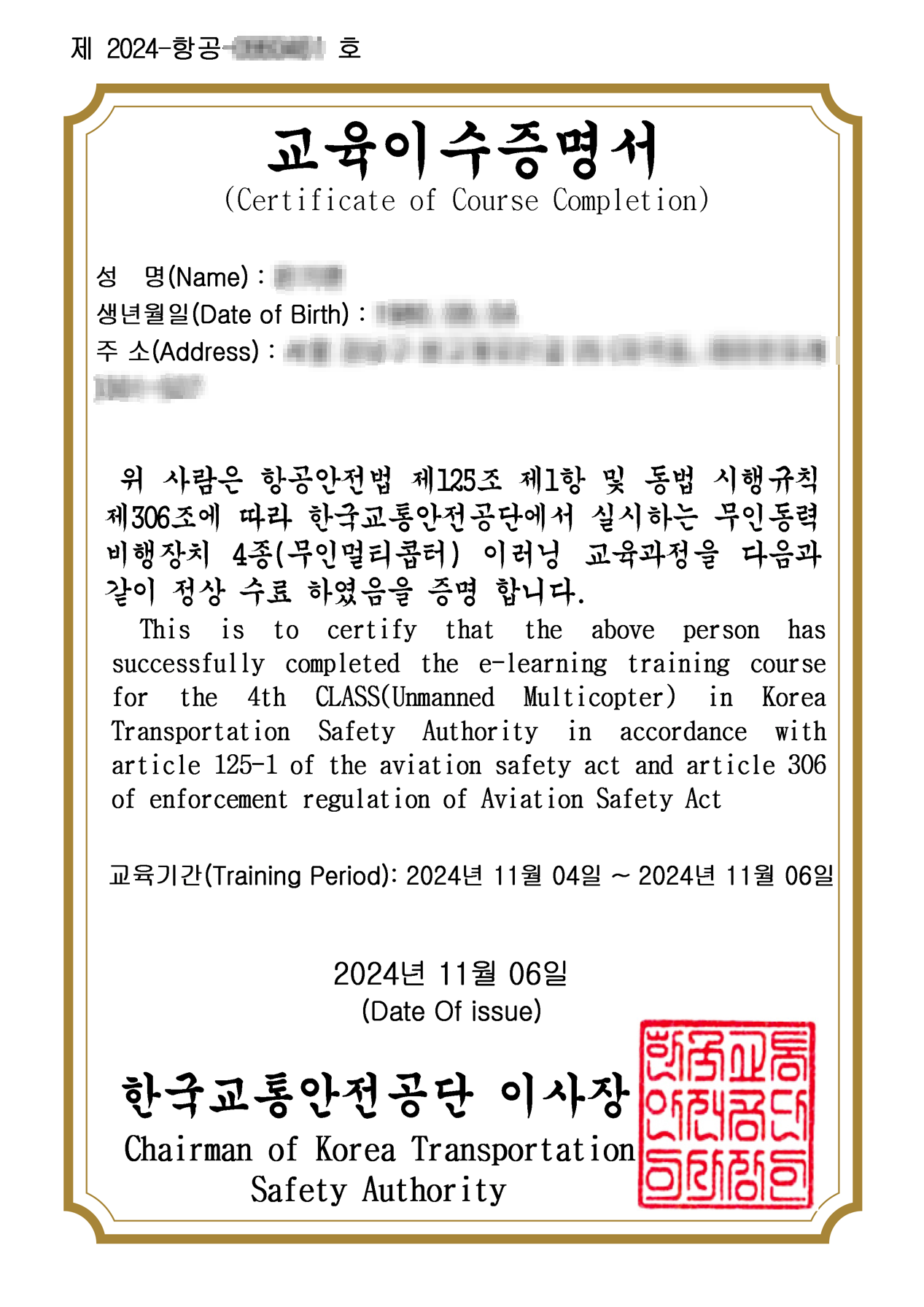 이젠 합법적인 드론 조정 자격 갖추게 되습니다~