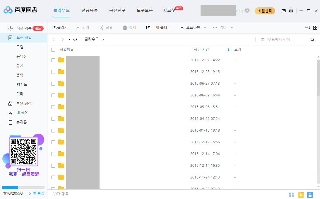 상당한 용량의 웹하드, 바이두 클라우드를 사용하고 싶은데
