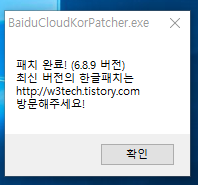 한글패치 파일을 받아서 바이두 클라우드가 설치된 폴더에 복사 하고 실행합니다