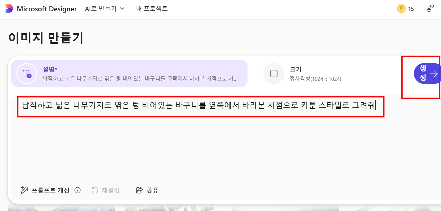 Microsoft Copilot: AI 도우미 화면에서도 이미지를 생성은 할 수 있습니다.
