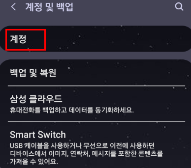 설정 > '계정 및 백업' 메뉴로 들아가서