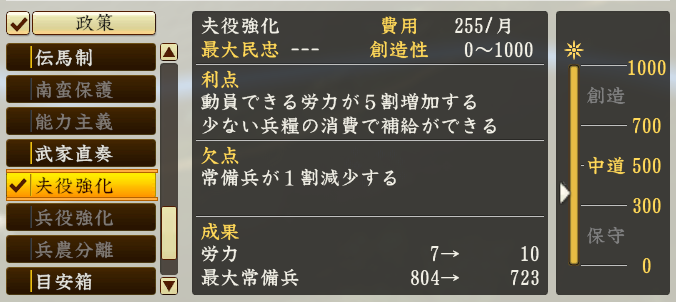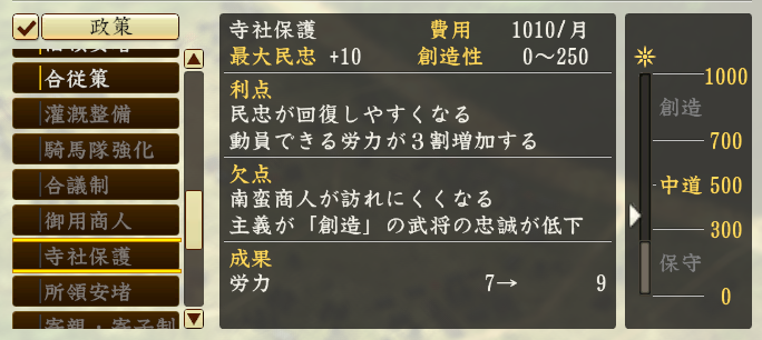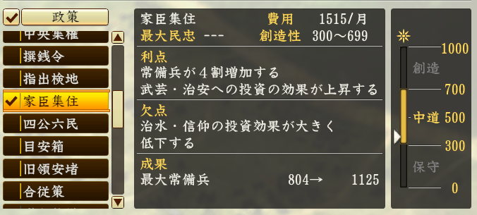 성의 보유수가 적은 성주의 입장이라면 정책을 하지 않는 편이 좋은 경우도 많이 있습니다.
