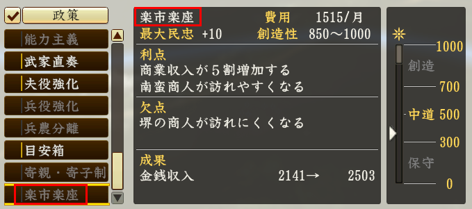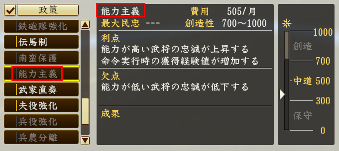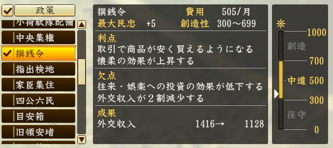다이묘(大名) 한정 정책이 아니라, 어느 무장이라도 활용 가능한 정책을 소개합니다.