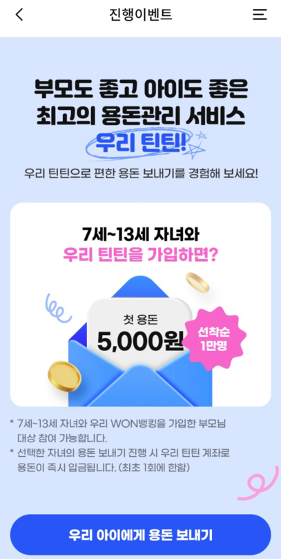 우리 아이 첫 용돈은 우리은행이 보내준다