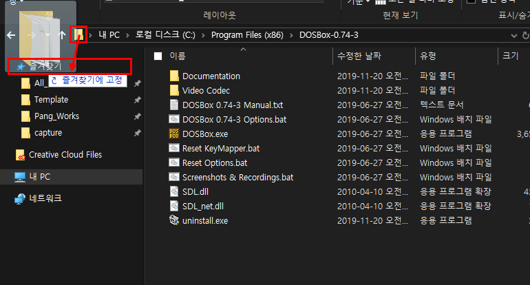 즐겨찾기에 자주 가는 폴더가 등록되었습니다