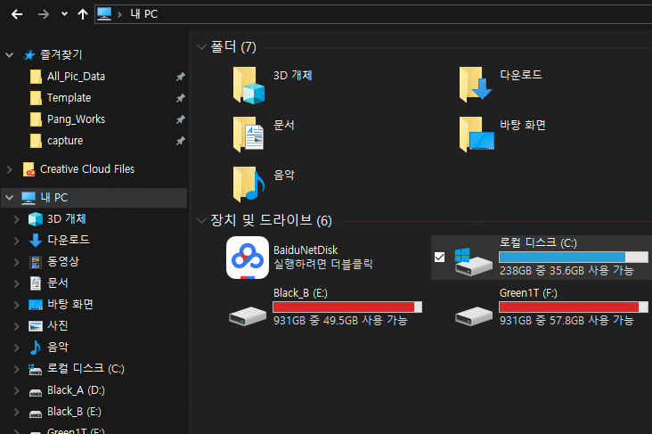 윈도우10 탁색기의 기본 기능인 폴더 즐겨찾기를 아래의 방법으로 사용해보세요