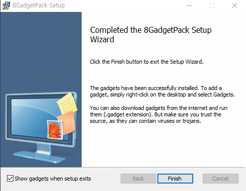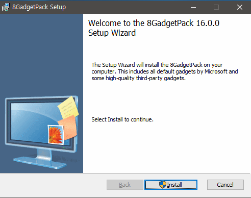 위의 두 파일을 받아서 압축을 풀면 8GadgetPackSetup.msi이라는 파일이 하나 나오는데