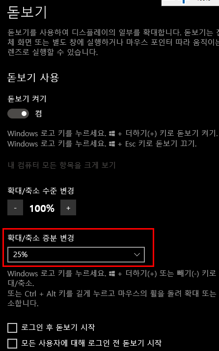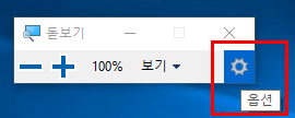 옵션을 살펴보면 확대/축소 되는 비율을 조절 할 수 있습니다 (기본값을 100% 단위)