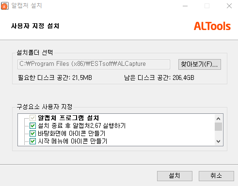 예를들어 알툴즈에서 제공하는 알캡처를 설치를 해봅니다.