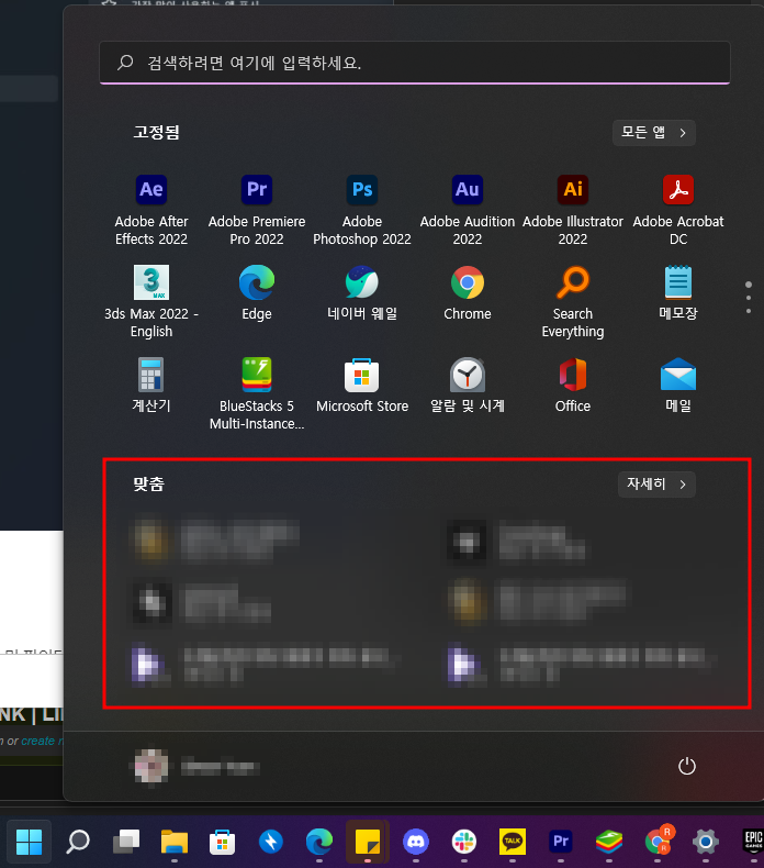 윈도우 키를 누르고 검색에 '시작' 이라고 씁니다.