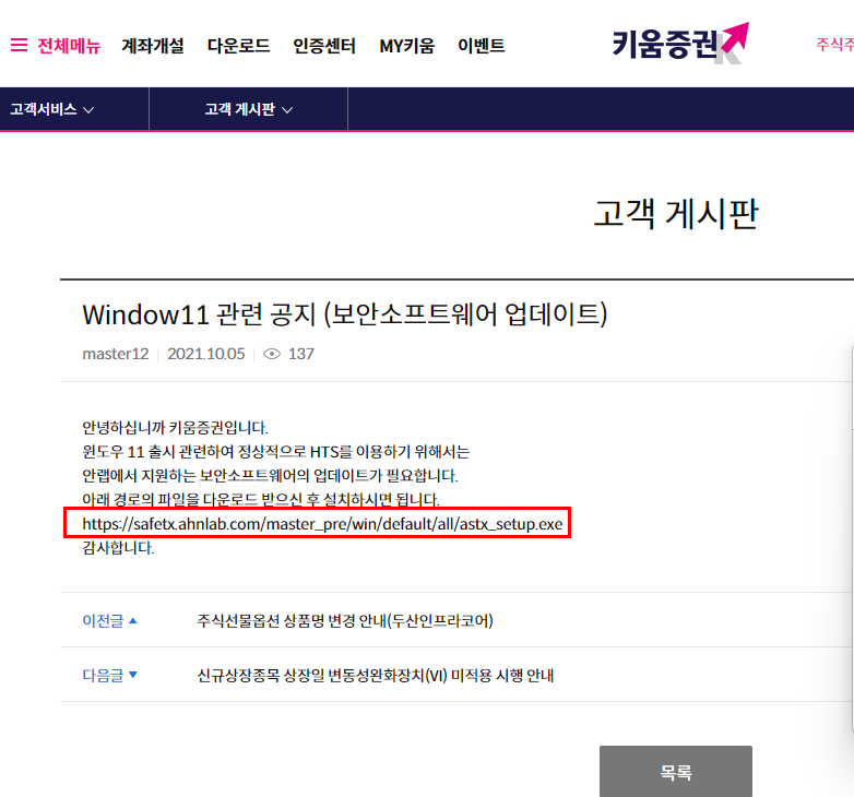 키움증권 고객 게시판에 관련 공지가 있었습니다.