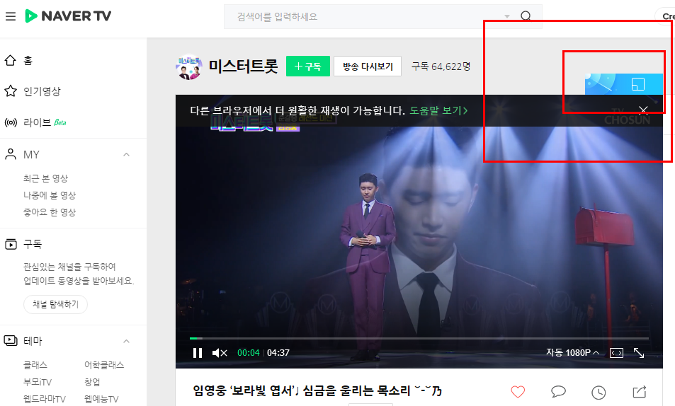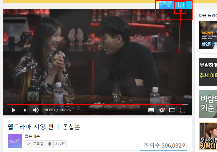 아무 영상이나 재생을 시작하고 마우스를 영상 위로 올리면