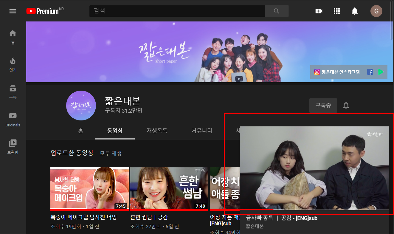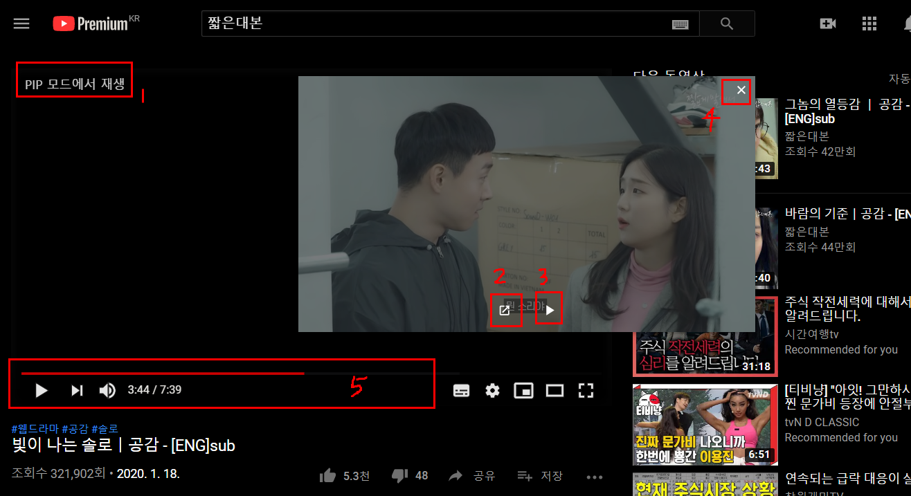 유튜브 자체 기능중에 '소형 플레이어'라는게 최근에 생겼는데