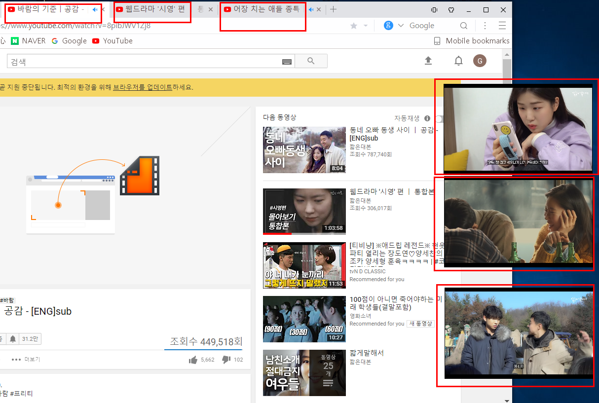 그리고 다른탭에서 추가로 영상을 여러게 띄울수가 있습니다.