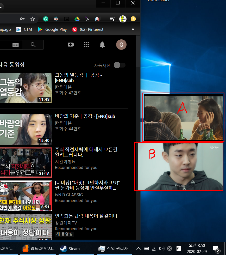 사무실에서 일할때 유튜브를 옆에 띄어놓고 영상을 힐끔힐끔 보면서 작업하면
