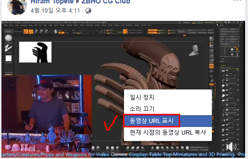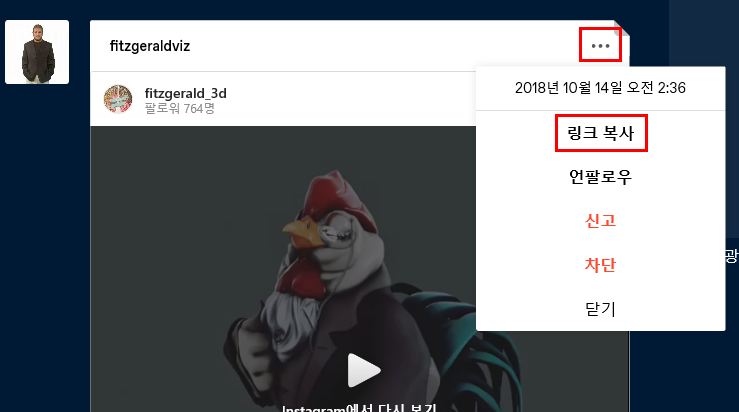 주소표시줄의 영상 주소를 Ctrl+C해서 복사한 다음 "링크 복사"를 누르게 되면