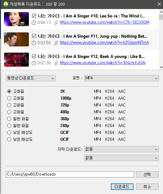 먼저 유튜브의 재생목록에 있는 영상들과 음악들을 일괄적으로 다운로드할 수 있는데요