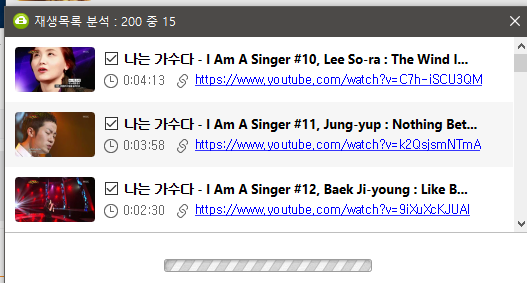 무료 버전에는 재생목록 중에 15곡 정도(기억이 잘 안나서..)만 받을 수 있다고 뜰 것입니다.
