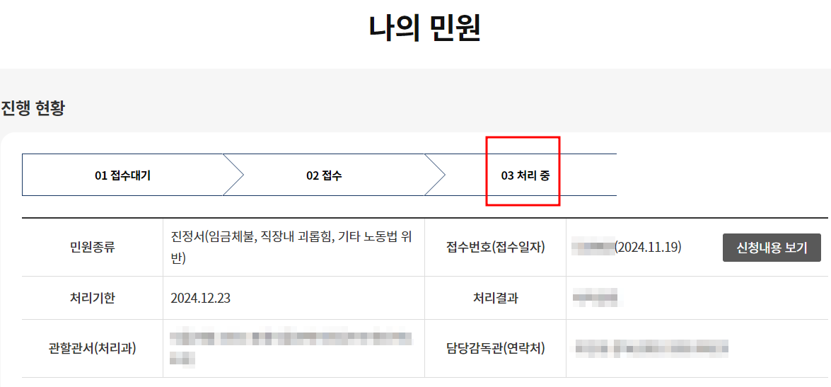노동포털에 들어가시면 진행 현황을 모니터링 할 수 있습니다