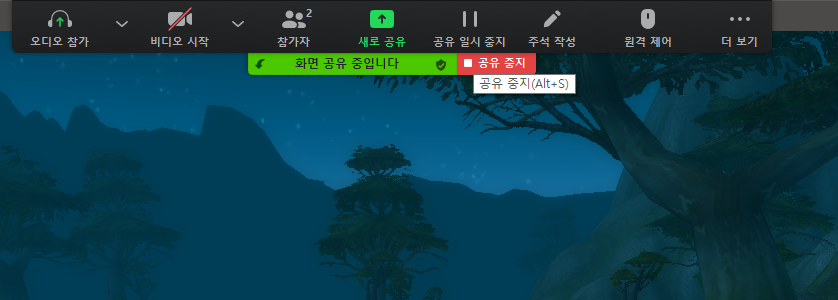 화면을 공유 중일땐 상단에 다음과 같이 표시 됩니다.
