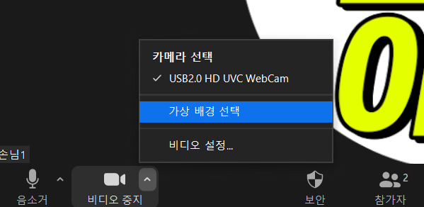 아래 ^를 눌러 '가상 배경 선택'