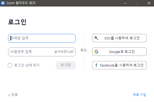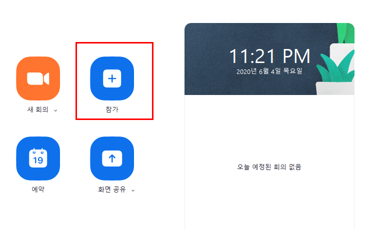 Zoom을 시작하게 되면 가장 먼저 보게되는 화면입니다.