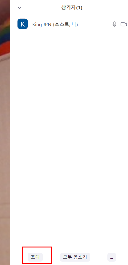 참가자 버튼을 눌러서 '초대' 하는 방법도 있습니다.