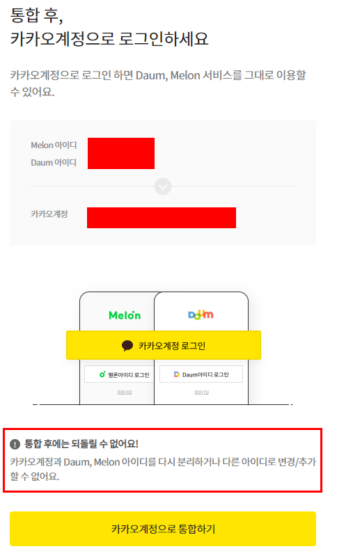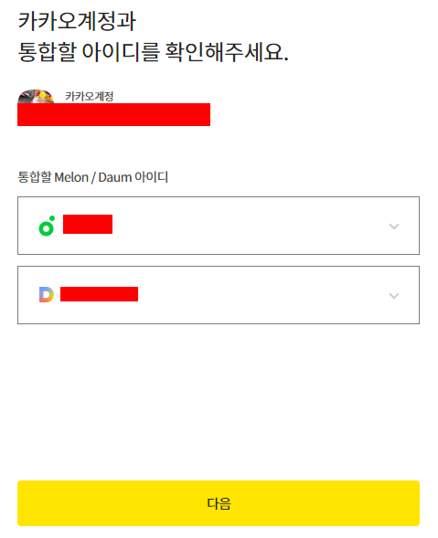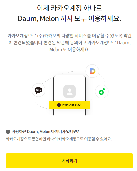 먼저 Daum, Melon계정을 하나의 카카 계정으로 통합하는 것부터 시작합니다.
