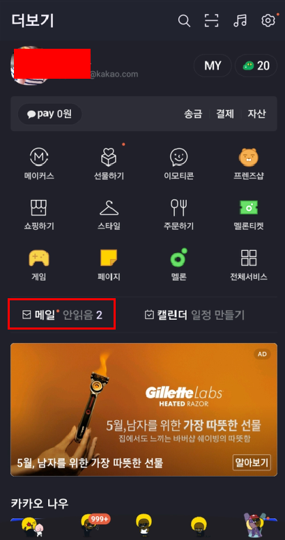 모바일 카카오 앱에선 아래위를 통해서 메일로 접근하실 수 있습니다.