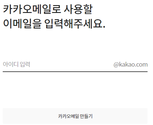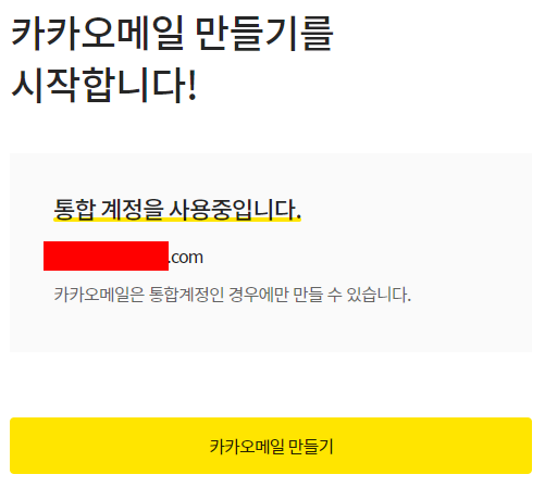 통합되지 않은 계정으로 접근을 하시면 카카오메일 만들기 페이지로 진입하게 됩니다.