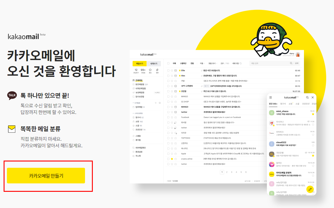 mail.kakao.com 사이트에서 시작하실 수 있습니다.