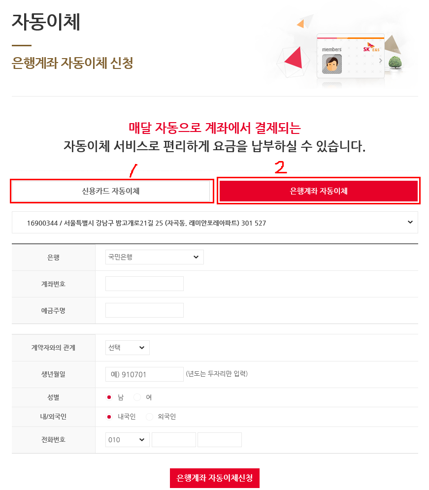 자동이체를 신청/변경 하려면 회원가입을 해야 합니다.