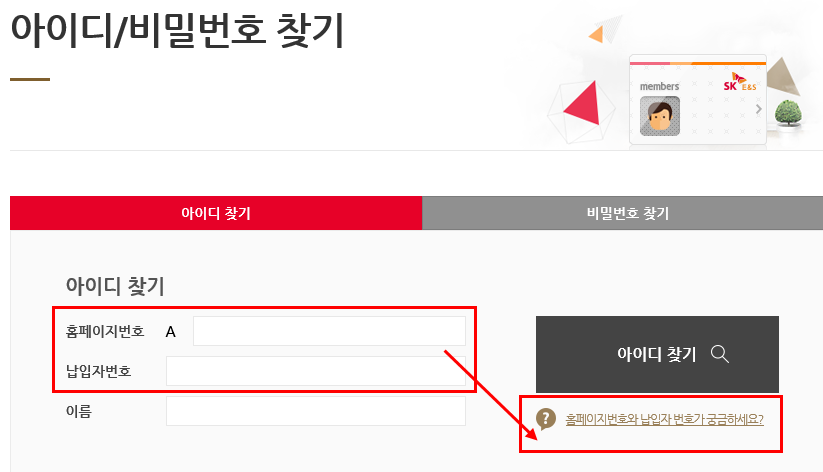 홈페이지 번호와 납입자번호를 요구합니다. 당췌.. 먼소린가 했더니 친절하게 찾는 방법을 알려줍니다.