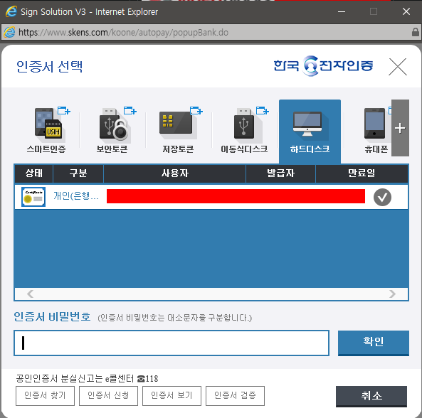 여기서 한번 공인인증서가 필요합니다..