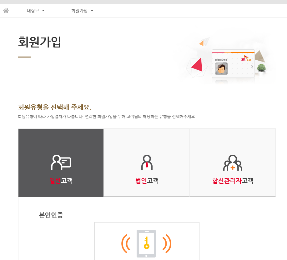 보통은 일반 고객으로 해놓고 가입을 합니다. (휴대폰 본인인증 필요)