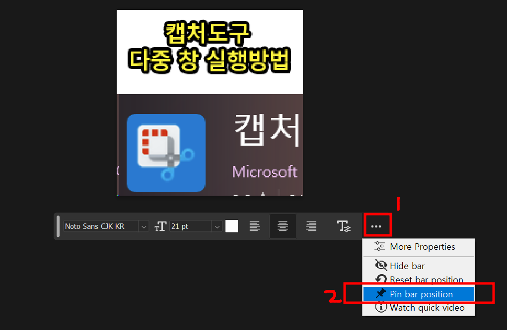 그러면 다음 부터 F1키만 누르면 저렇게 상황별 작업표시줄(Contextual Task Bar) 를