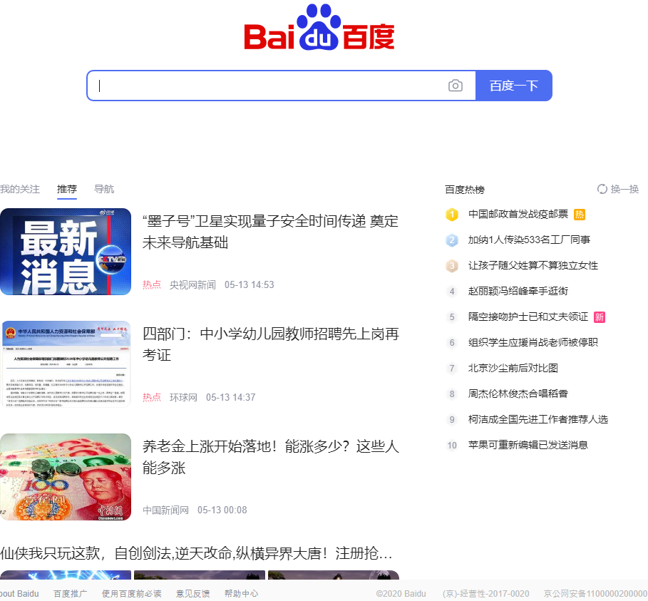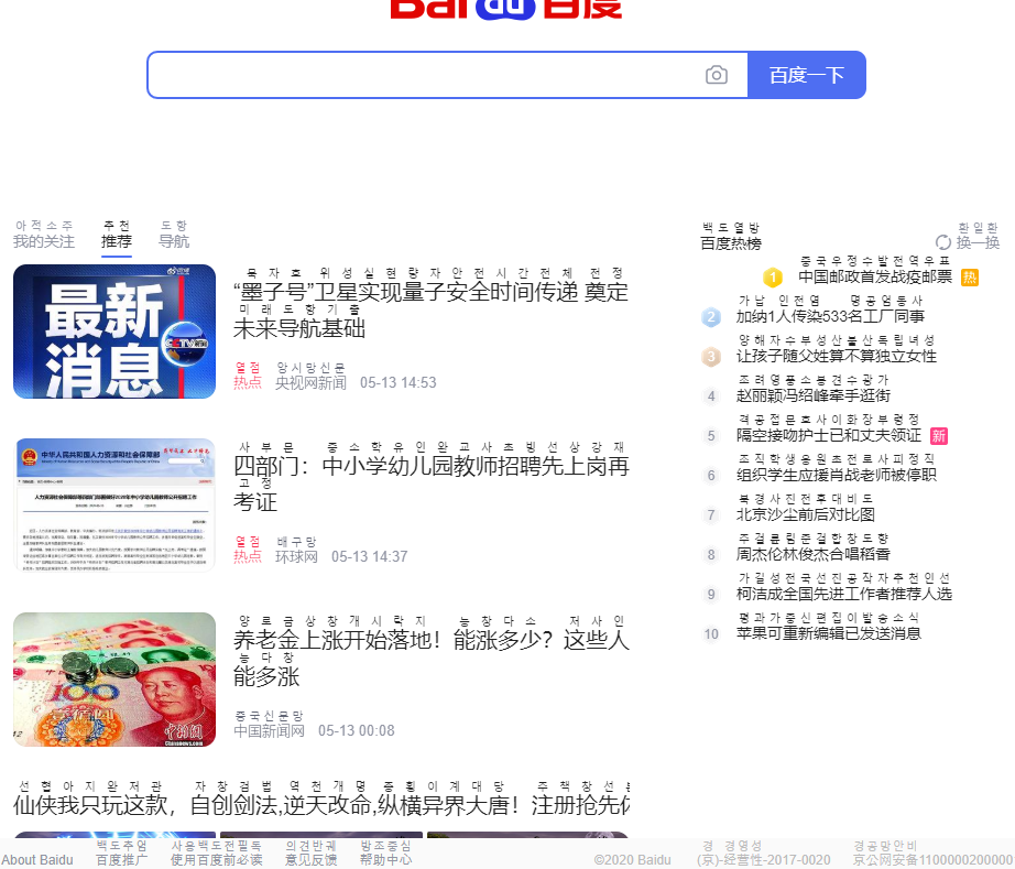 중국에서 가장 유명한 IT업체인 바이두의 홈페이지에 접속해 보겠습니다.