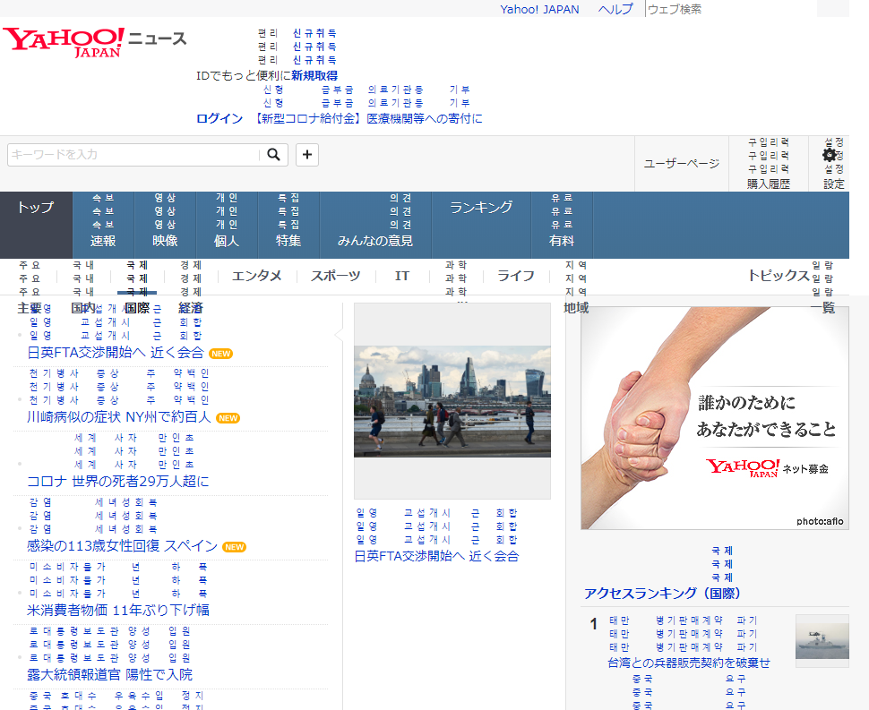 야후재팬의 메인 페이지입니다.