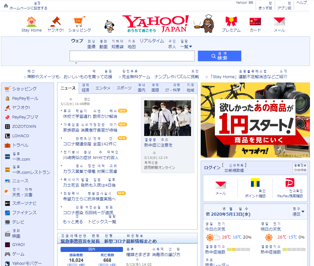 일본의 대표 사이트 야후재팬에서 한번 사용해 보겠습니다.