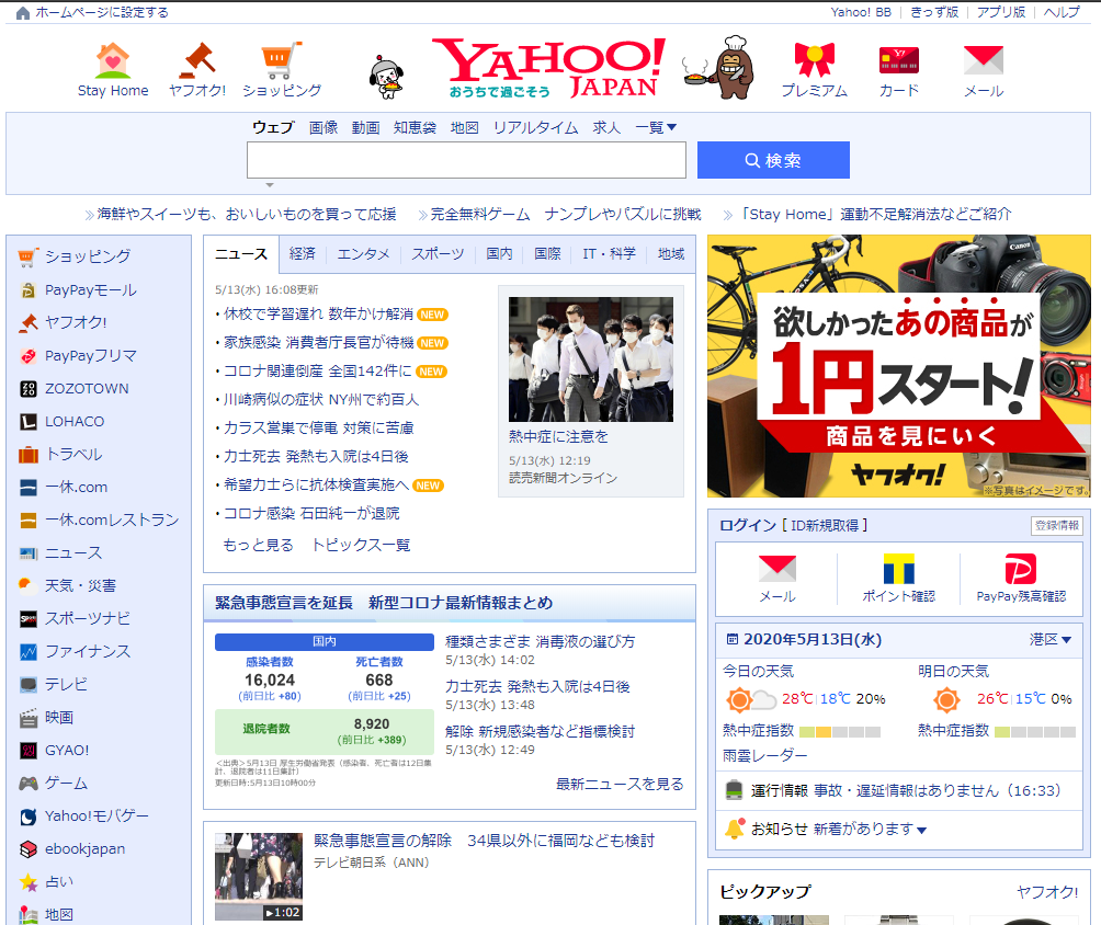 あなたの毎日をアップデートする情報ポータル。検索、ニュース、天気、スポーツ、メール、ショッピング、オークションなど便利なサービスを展開しています。