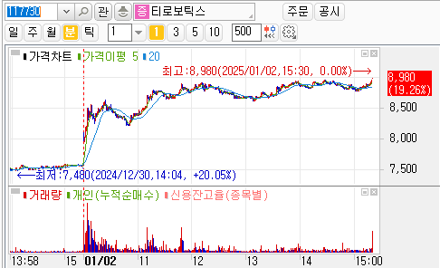 티로보틱스 +19.26%티로보틱스 일봉 티로보틱스 분봉