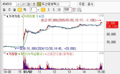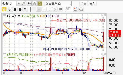 두산로보틱스 +28.11%두산로보틱스 분봉 두산로보틱스 일봉