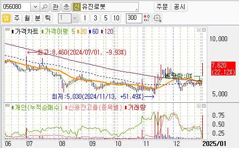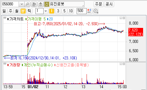 유진로봇 +22.12%유진로봇 일봉 유진로봇 분봉