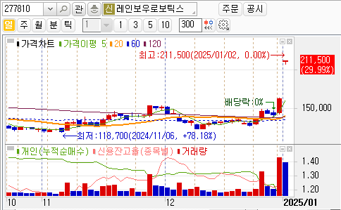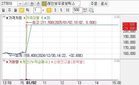 레인보우로보틱스 +29.99% 상한가!!레인보우로보틱스 일봉 레인보우로보틱스 분봉