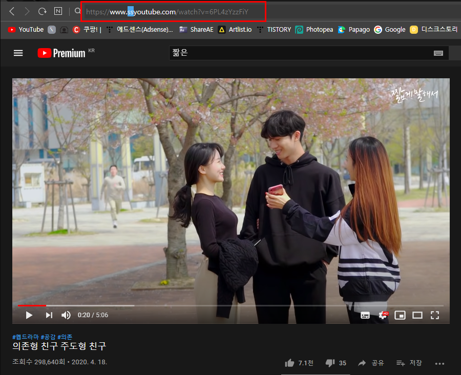 유튜브 영상 주소앞에 ss를 붙이는 방법인데