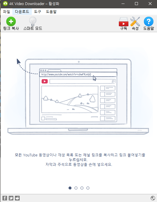 바탕화면에 설치된 실행 아이콘을 눌러 4K Video Downloader를 실행합니다.